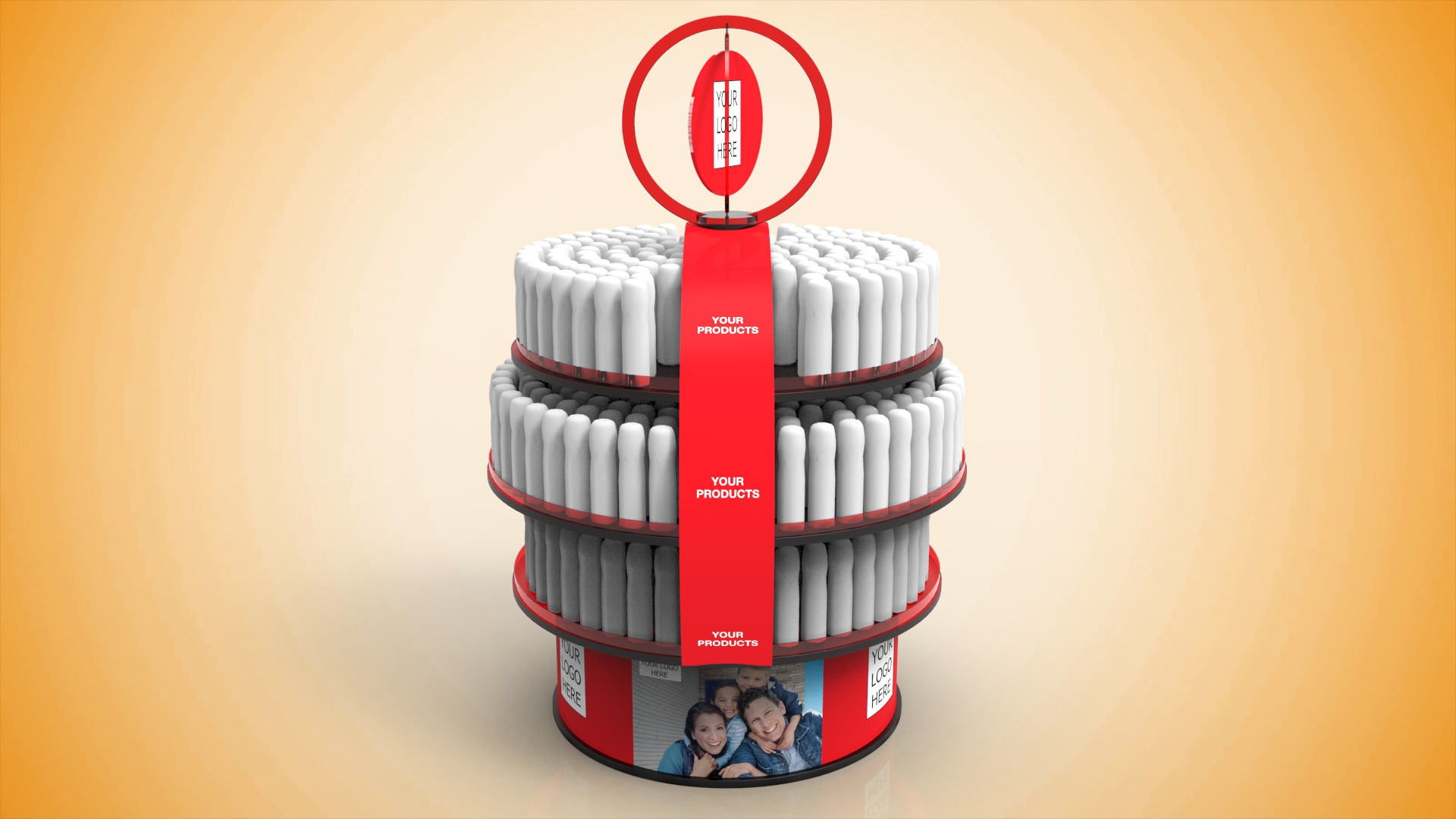 Un display inovativ, gândit să atragă privirile în magazin. Compact, de dimensiunea unui palet, acest display include 3 rafturi și un header flexibil. Forma sa neconvențională permite cumpărătorilor să se învârtă în jurul său și să aleagă produsul dorit.